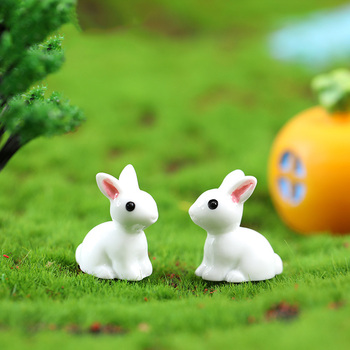 Figuras de conejito de resina en miniatura, pequeños animales de conejo, adornos de paisaje de musgo de jardín de hadas para relleno de Pascua, pastel, decoración del hogar