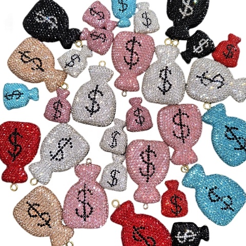 Encantos de la caja del teléfono basura para dólares estadounidenses Cartera tridimensional llena de diamantes, accesorios colgantes de bricolaje, decoración ostentosa